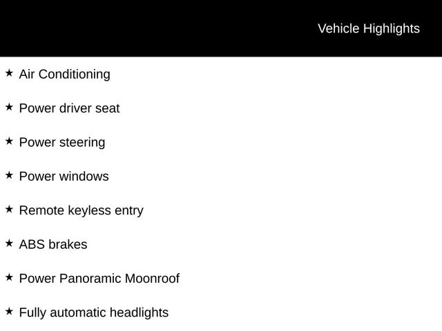 Recent Arrival! Clean CARFAX. Black w/Leather-Trimmed Seat Trim, 17" x 7.5" Alloy Wheels, ABS brakes, Air Conditioning, Front Center Armrest, Fully automatic headlights, Heated Front Bucket Seats, Panic alarm, Power driver seat, Power Panoramic Moonroof, Power steering, Power windows, Remote keyless entry, Speed control.
