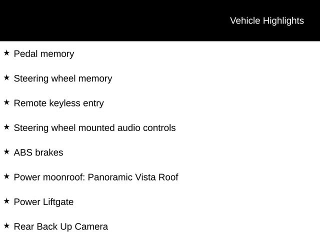 - Power moonroof: Panoramic Vista Roof