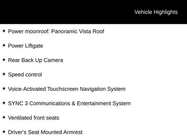 CARFAX One-Owner. 3.73 Axle Ratio, ABS brakes, Air Conditioning, Alloy wheels, Automatic temperature control, Driver's Seat Mounted Armrest, Equipment Group 800A Black Label, Front dual zone A/C, Heated front seats, Memory seat, Navigation System, Power driver seat, Power Liftgate, Power moonroof: Panoramic Vista Roof, Power Reclining 3rd row seats, Power steering, Power windows, Radio: Revel Ultima AM/FM/HD/MP3 Audio System, Rear air conditioning, Rear Back Up Camera, Remote keyless entry, SiriusXM Radio, Speed control, Steering wheel memory, Steering wheel mounted audio controls, SYNC 3 Communications & Entertainment System, Ventilated front seats, Voice-Activated Touchscreen Navigation System.