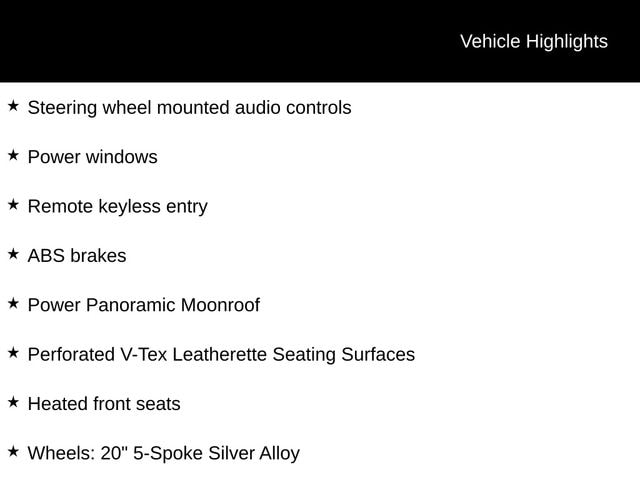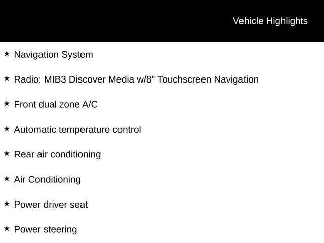 CARFAX One-Owner. ABS brakes, Air Conditioning, Automatic temperature control, Front dual zone A/C, Heated front seats, Navigation System, Perforated V-Tex Leatherette Seating Surfaces, Power driver seat, Power Panoramic Moonroof, Power steering, Power windows, Radio: MIB3 Discover Media w/8" Touchscreen Navigation, Rear air conditioning, Remote keyless entry, Steering wheel mounted audio controls, Wheels: 20" 5-Spoke Silver Alloy.